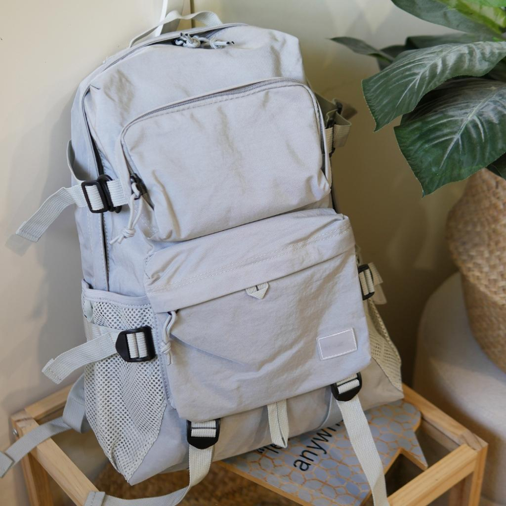 這一款在小紅書買的~質感很好耶~ 包包太多了~ 包包斷捨離中~ 很多都是買來沒有用到~或是非常少用的~歡迎賣場挖寶喔 質感灰色~ 15吋筆電可以放入 喔! 46*17*33公分~ 全新吊牌未拆 現貨是灰色喔 黑色是背起來的大小樣子!供參考比例