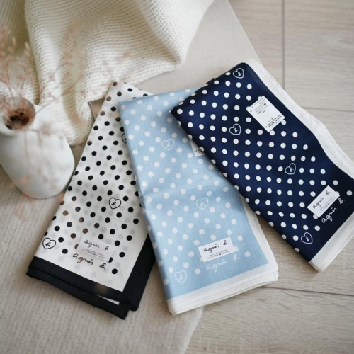丸丸選品經典點點agnes b日本製手帕 領巾藍色 黑色經典送禮交換禮物復古