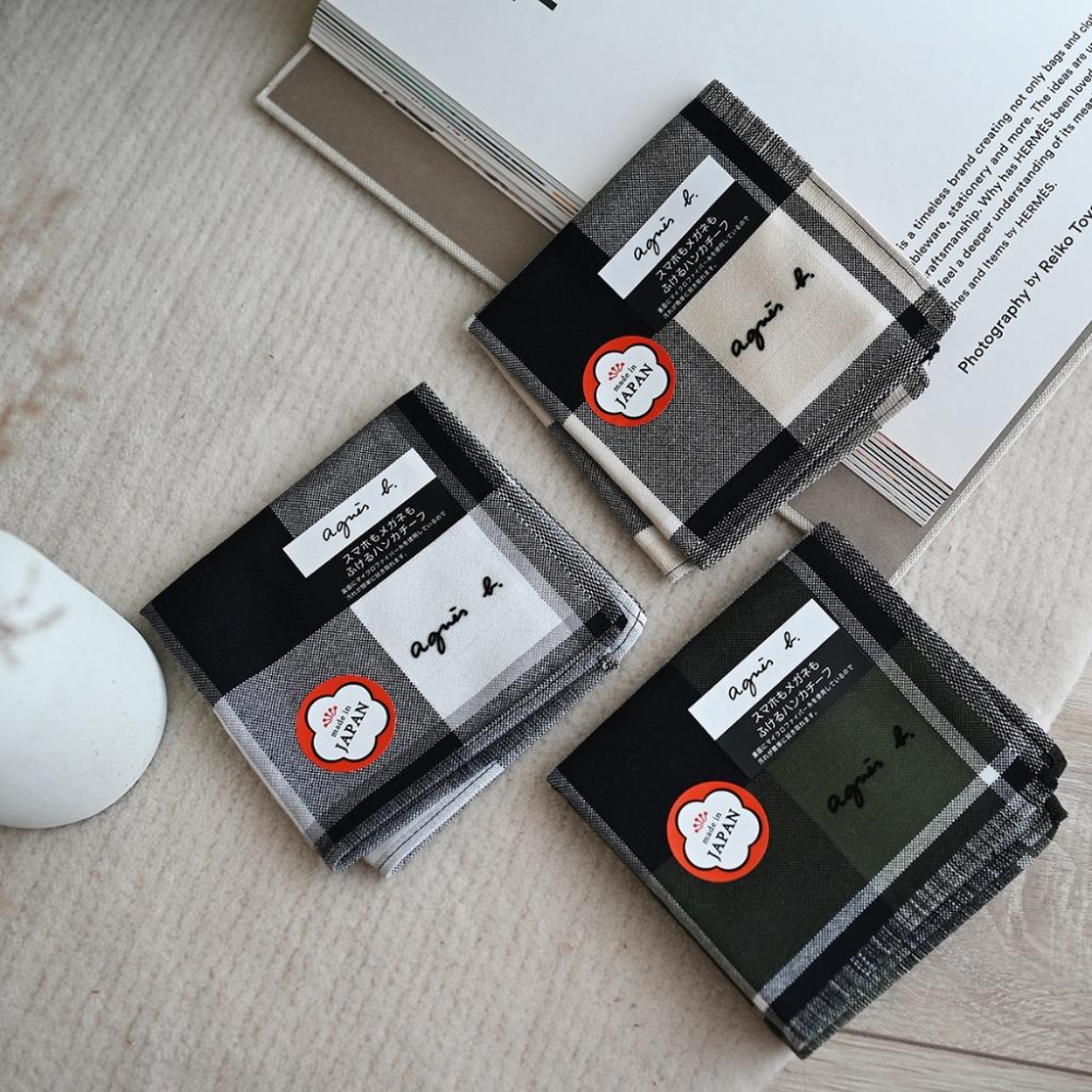 小丸媽日本 Agnes b 小b 小方巾 手帕 擦汗日本製格紋細格紋英倫風氣質 交換禮物擦手巾手帕小毛巾 新年禮物
