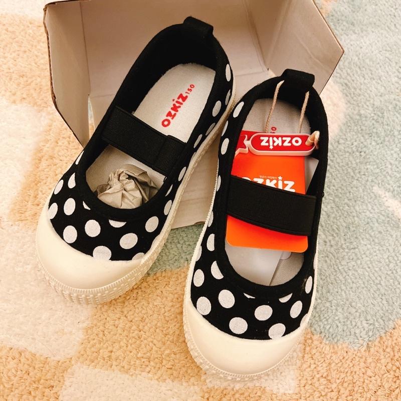 韓國ozkiz女童娃娃鞋黑色點點平底鞋15公分