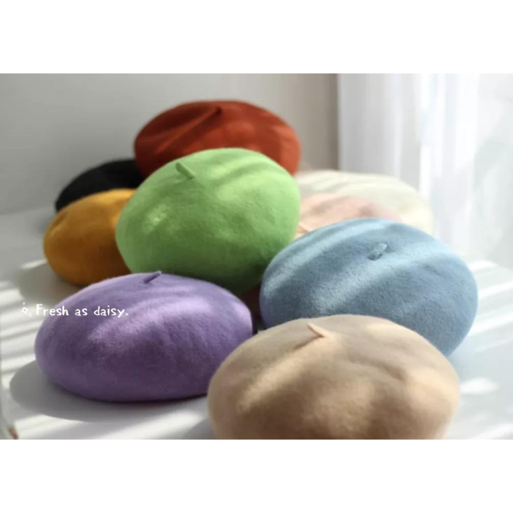|春日醒|多色鳥💫新款日系少女甜美復古清新羊毛貝雷帽畫家帽女秋冬纯色羊毛混紡百搭英倫
