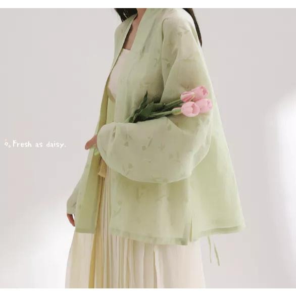 改良式漢服外套日常也可以穿搭 想初嘗漢風的水水可以入手看看喔 開衫上沒有盤扣或任何鈕扣喔