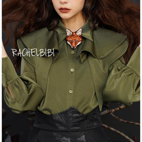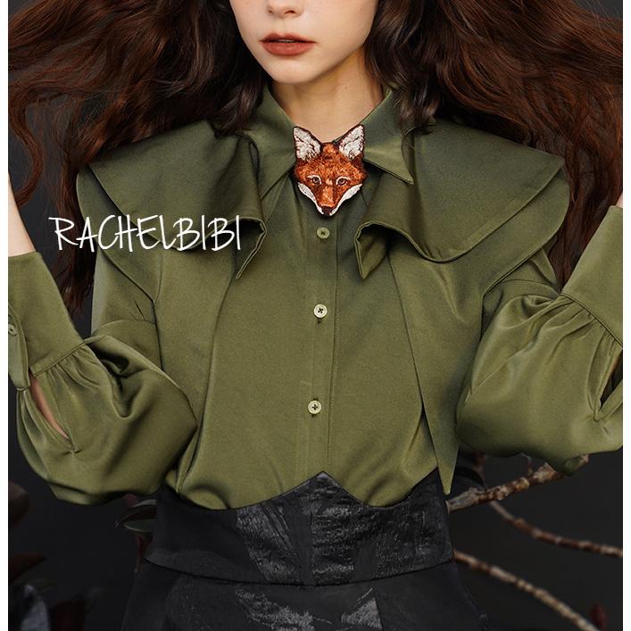 |春日醒|油畫狐狸💫新款原創手繪狐狸刺繡領結復古vintage襯衫西裝特色古著造型童趣