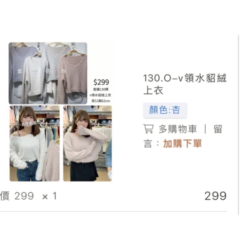 5.V領水貂絨上衣(杏)280