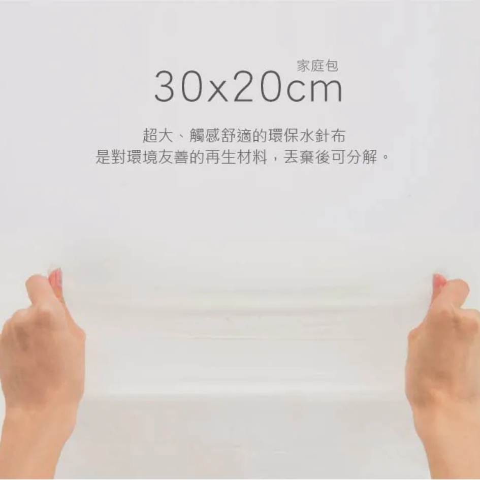 ◎ 超大、觸感舒適的環保水針布,是對環境友善的再生材料,丟棄後可分解