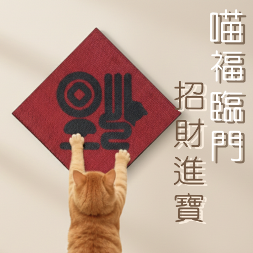 - 一物兩用:裝飾+磨爪:獨特的斗方福字造型,過年貼在門上、牆上超吸睛,主子磨爪的同時也在幫家裡「抓」財!