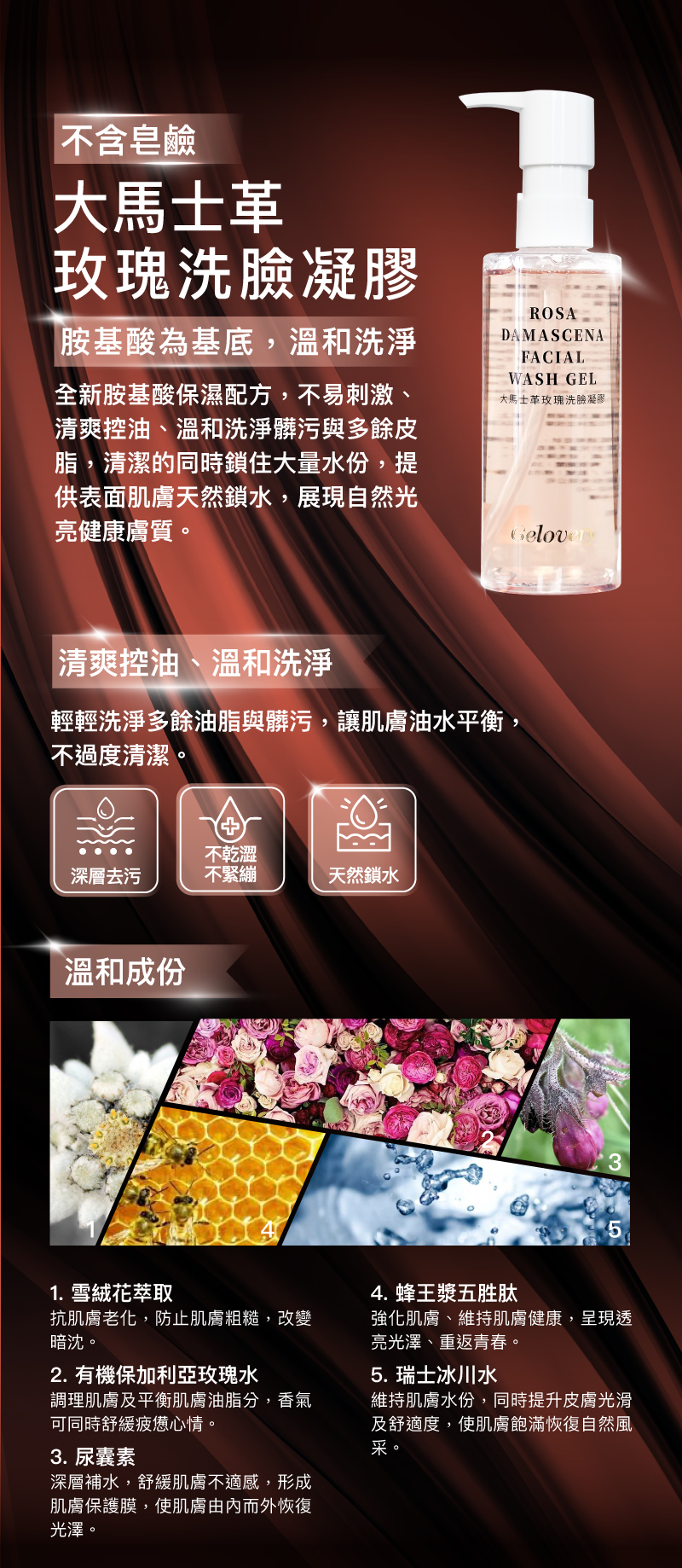 全新胺基酸保濕配方 不易刺激、清爽控油、溫和洗淨髒污與多餘皮脂 清潔的同時鎖住大量水份,提供表面肌膚天然鎖水 展現自然光亮健康膚質。