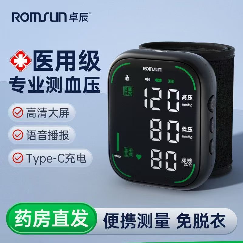 卓辰充電式大螢幕背光醫用測量血壓儀器家用血壓計手腕式電子全自動