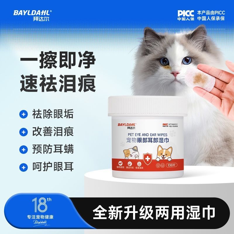 拜達爾寵物濕紙巾眼部淚痕貓咪狗狗擦眼清潔濕紙巾貓咪狗耳部專用濕紙巾