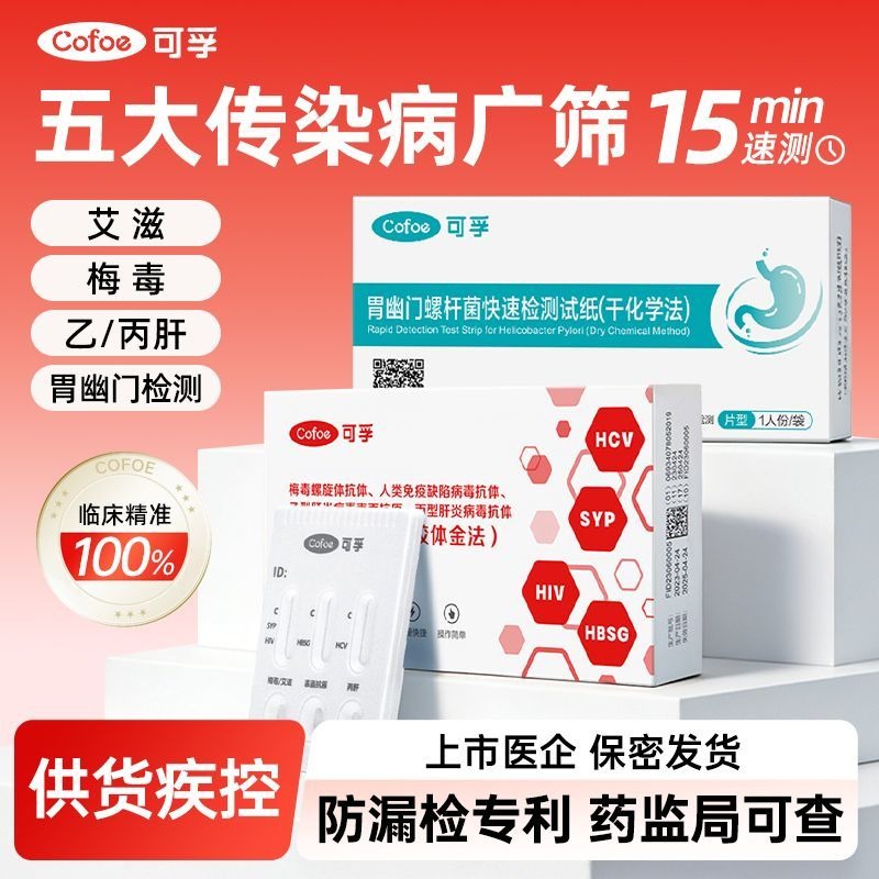 可孚hiv愛滋病檢紙梅毒乙肝性病檢測四合一自我檢測四項非第四代高風險