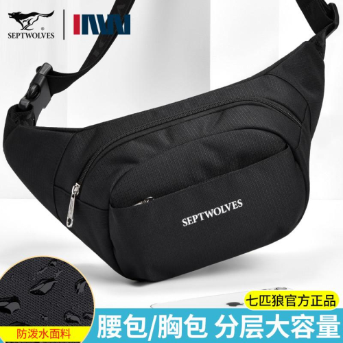 七匹狼男士腰包新款休閒胸包大容量多功能斜背包牛津佈防水斜跨包