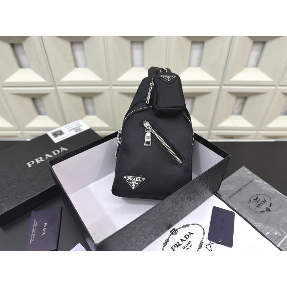 尼龍布二合一胸包防水布斜挎背包經典百搭實物拍攝 配送防塵袋30x16 cm。