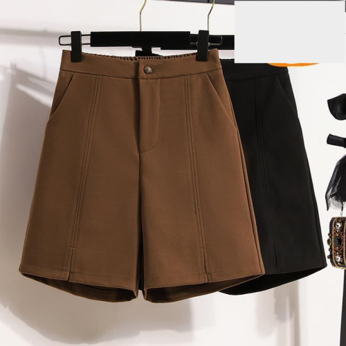 咖色毛呢短褲女秋冬2025新款爆款高腰褲子大尺碼胖mm顯瘦女褲配靴子