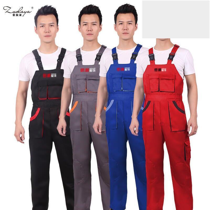 工廠直銷多口袋機修連身揹帶褲工作服男工程機電吊帶工裝訂製logo