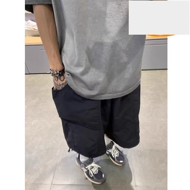 日系復古工裝速乾短褲男夏季寬鬆休閒七分褲小眾設計運動直筒五分褲