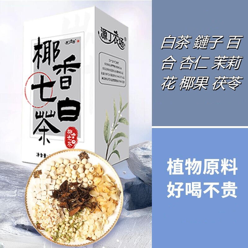 椰香七白飲杏仁蓮子百合七白飲品潤白透亮鮮果茶茉莉花茶包養生茶