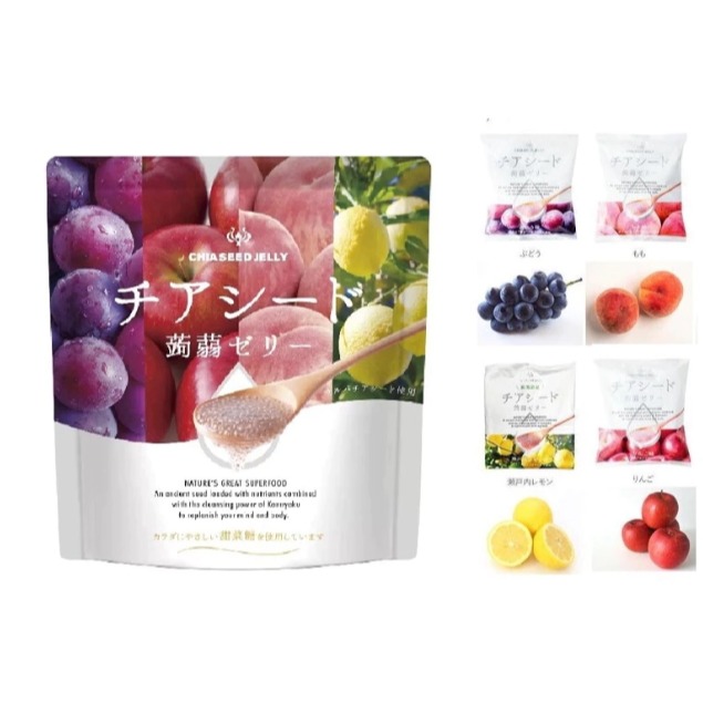 含有奇亞籽的蒟蒻果凍。