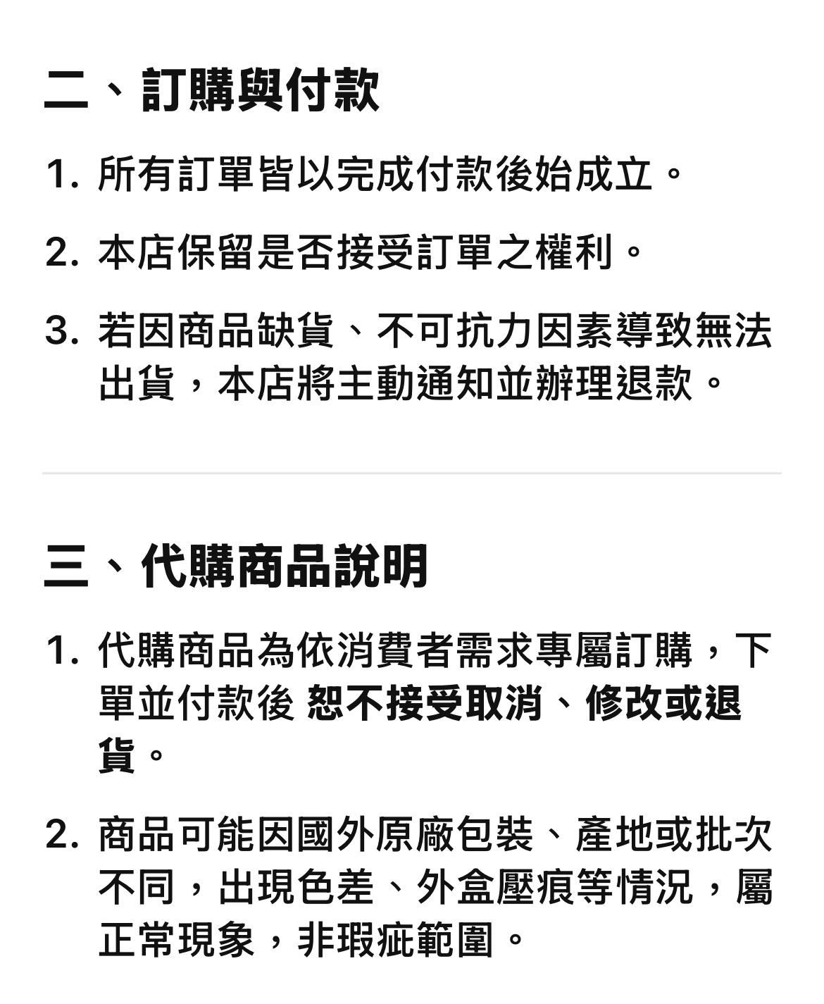 <p style="margin-bottom:12px&#59;font-style:normal&#59;font-size:12px&#59;line-height:normal&#59;font-family:'Times New Roman'&#59;min-height:13.8px&#59;"><span style="font-family:'TimesNewRomanPS-BoldMT'&#59;font-weight:bold&#59;font-size:18px&#59;background-color:rgb(255,255,0)&#59;"><font color="#d6a5bd">服務內容</font></span></p><p style="margin-bottom:12px&#59;font-style:normal&#59;font-size:12px&#59;line-height:normal&#59;font-family:'Times New Roman'&#59;"><span>本店提供日本、韓國及其他國家之商品代購、現貨販售與選品服務,商品資訊將盡可能詳實呈現,但仍可能因原廠改版、批次差異或拍攝光線而略有不</span></p><div><span><br /></span></div>