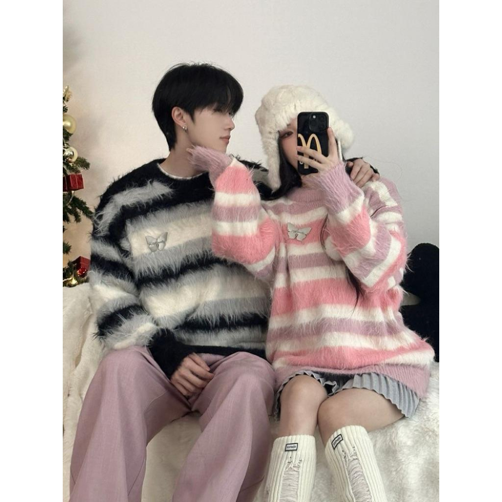 𝑩𝑶𝑾𝑨˚✿˖ 選品|蝴蝶絨絨條紋情侶裝