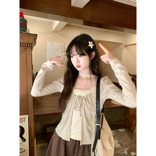 奶油色系/甜美氣質/溫柔感女孩/蕾絲背心/層次穿搭  S 衣長 49 胸圍 76 M 衣長 50 胸圍 80 L 衣長 51 胸圍 84 若不確定尺寸皆可聊聊諮詢ᡣ𐭩 ⊹ ࣪ ˖ 奶油色的夢幻小套裝 帶著一點復古又不失甜感🍪 ⊹ ࣪ ˖ 蕾絲背心與輕薄罩衫疊穿出細膩層次 ⊹ ࣪ ˖ 柔和又有層次感🥛 https://s-cf-tw.shopeesz.com/file/tw-11134208-81ztc-mgoznnqppw5ka1
