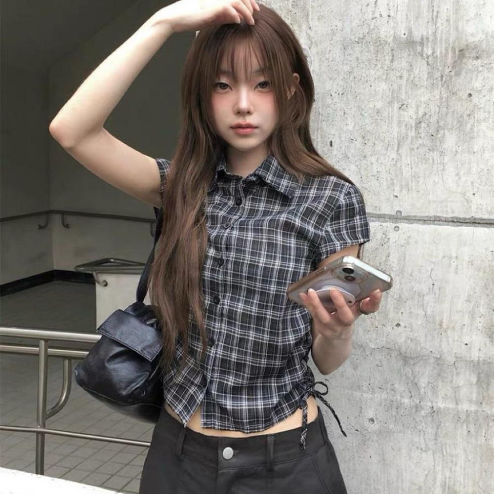𝑩𝑶𝑾𝑨˚✿˖ 選品|韓系街頭抽繩格紋襯衫