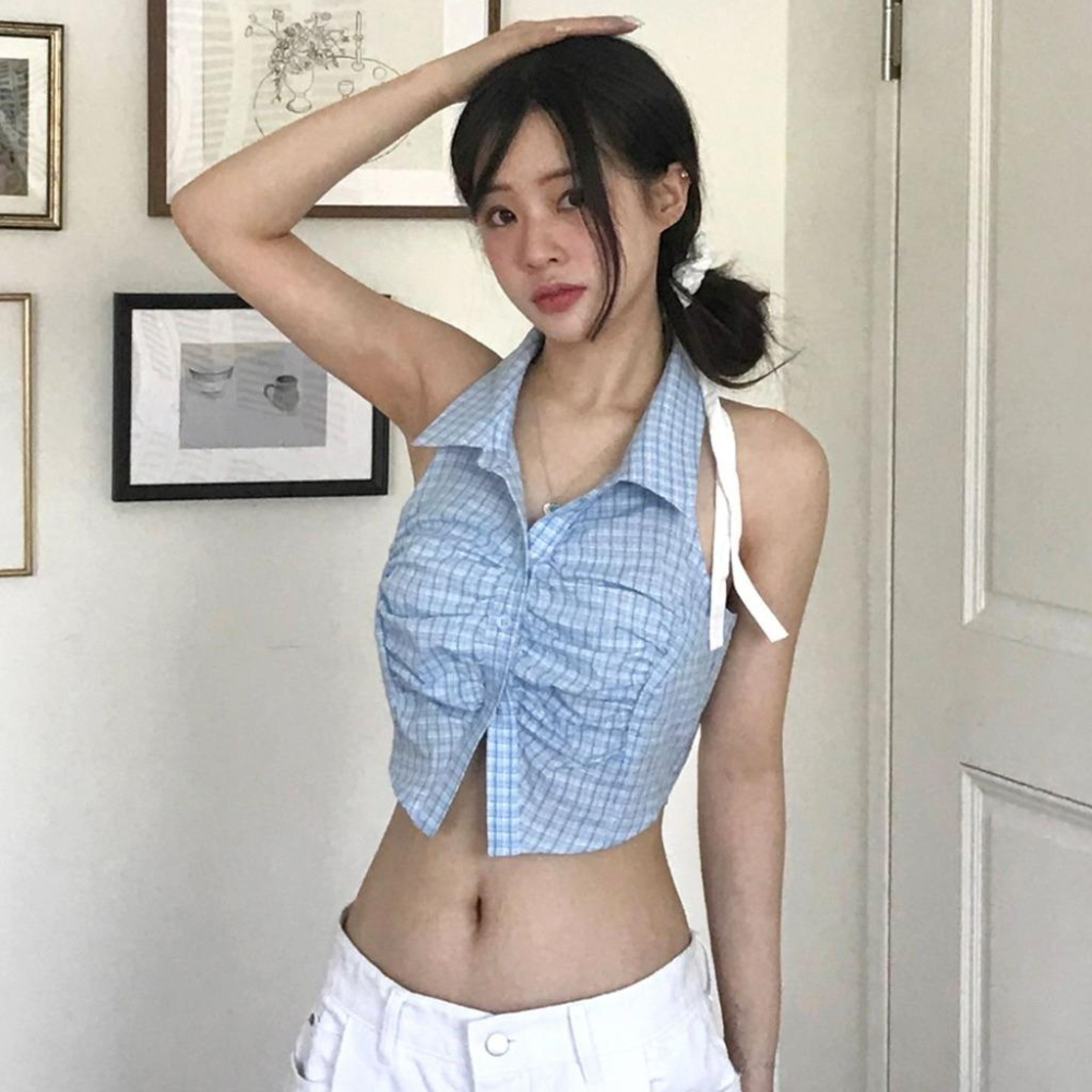 𝑩𝑶𝑾𝑨˚✿˖ 選品|藍色格紋掛脖背心