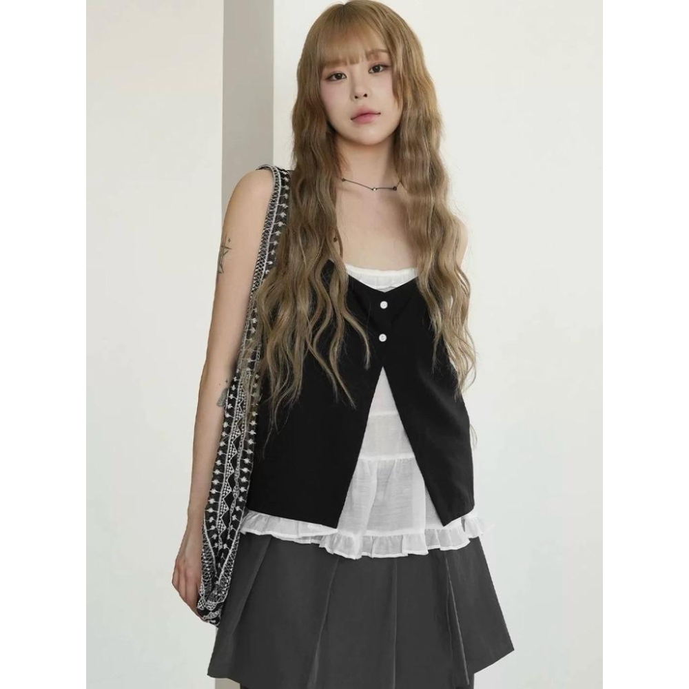 𝑩𝑶𝑾𝑨˚✿˖ 選品|韓系簡約拼接假兩件吊帶上衣(上衣&休閒裙褲)