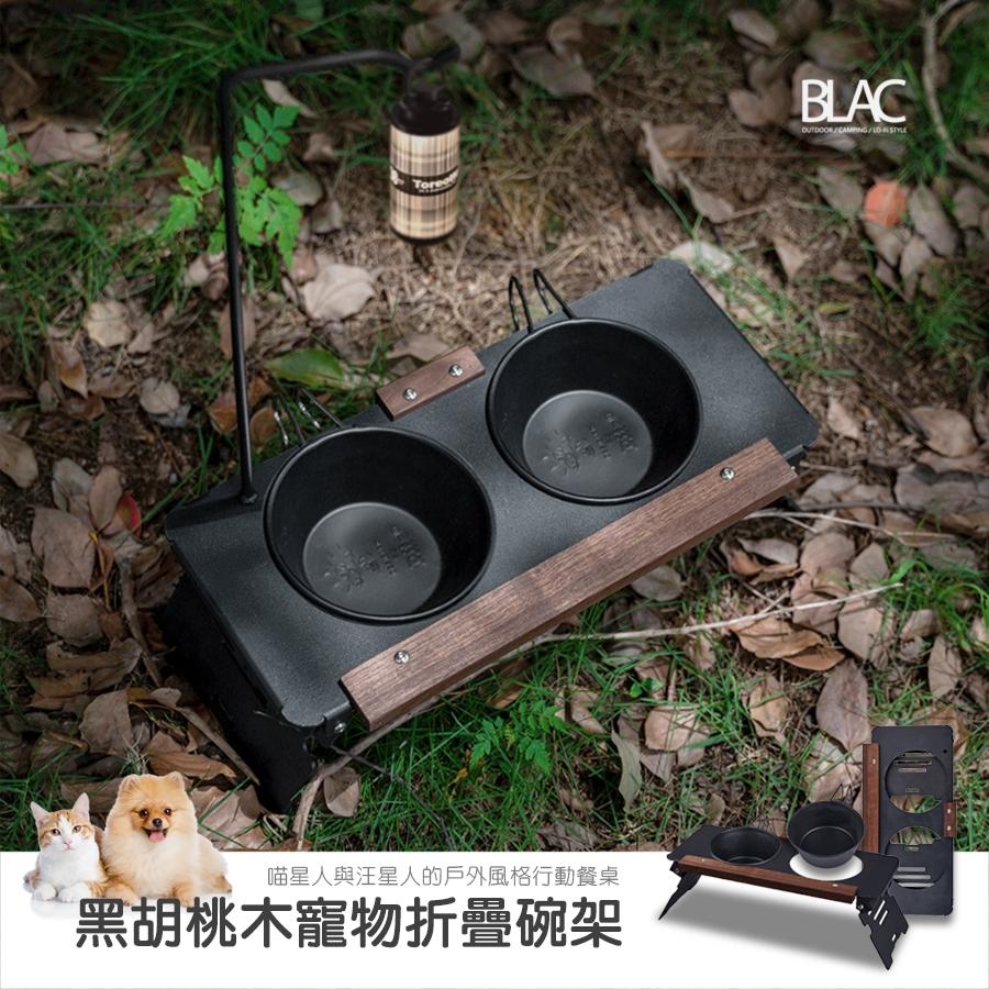 【BLAC黑客】黑胡桃木寵物折疊碗架寵物行動餐桌 可拆疊收納 可拆卸式燈桿 附雪拉碗