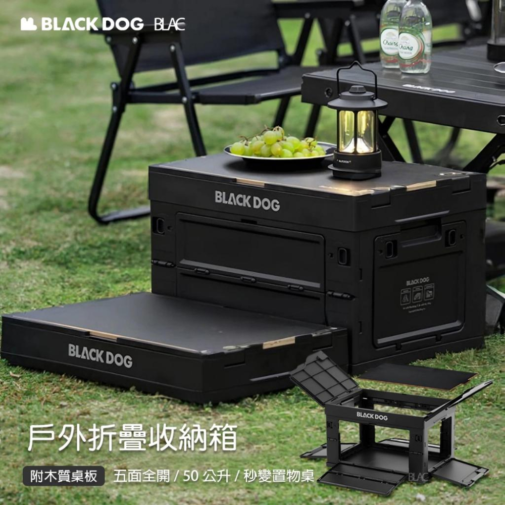 【BLAC黑客】BLACKDOG黑狗折疊露營收納箱附木質桌板 5面全開 50公升 置物桌模式