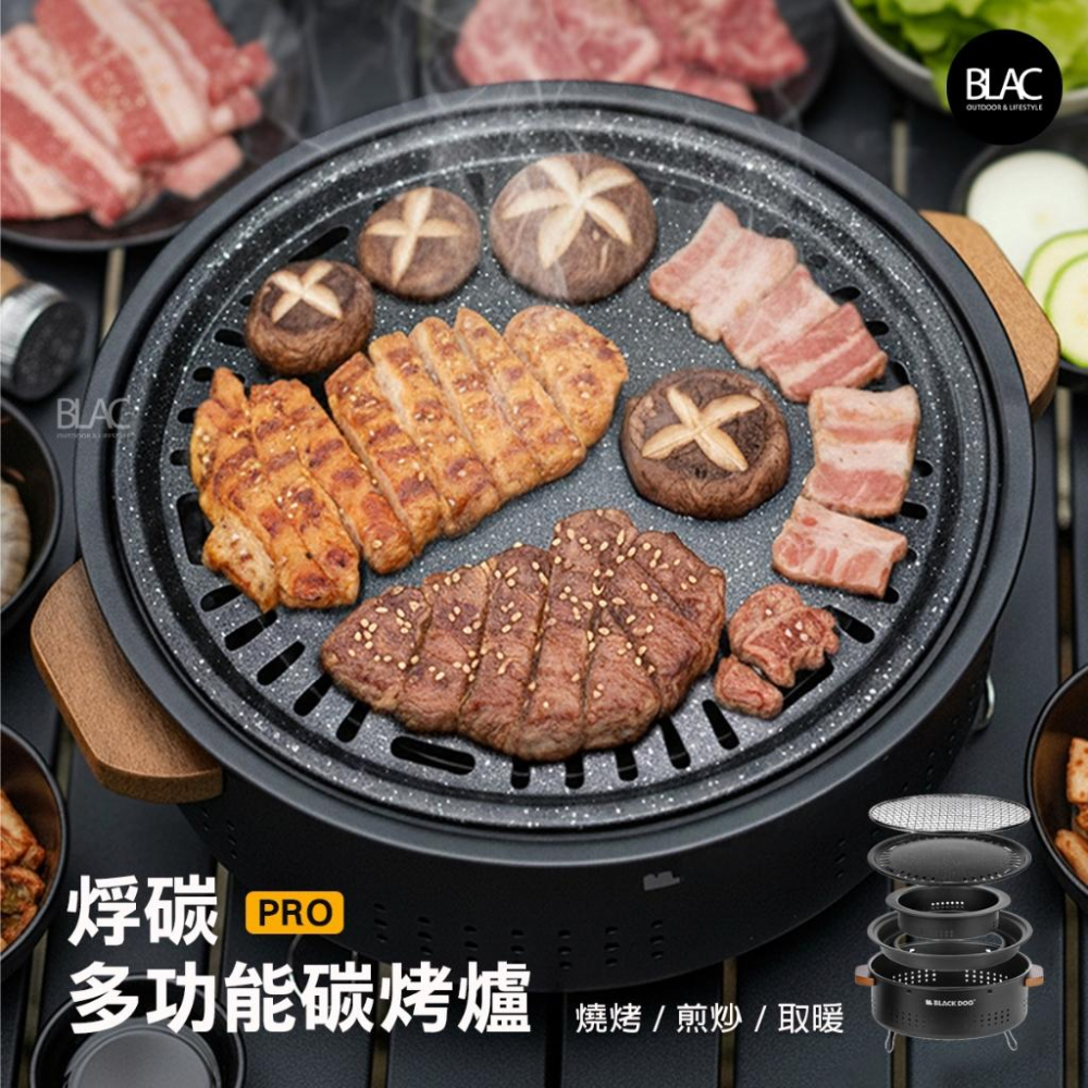 【BLAC黑客】BLACKDOG黑狗多功能燒烤爐碳烤爐 烤網煎烤盤二合一 烰碳PRO