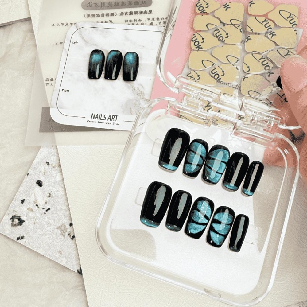 暮蝶美甲 闆娘手繪 短梯 絕美的極光貓眼 不同燈光下反射不同色澤 平面設計適合日常配戴