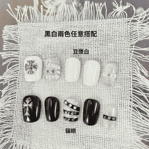 克羅心十字架新款上市 闆娘設計款 短甲造型 黑白兩色任意搭配 可以兩手AB款