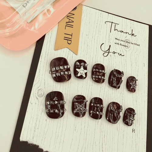 超酷設計美甲 運用鉚釘 星星 蜘蛛設計出暗黑短甲 血色色調非常顯白