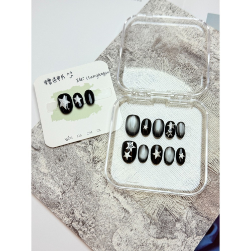 黑珍珠貓眼星星美甲 短甲造型 平面設計 適合日常配帶使用 展示甲型:短短梯