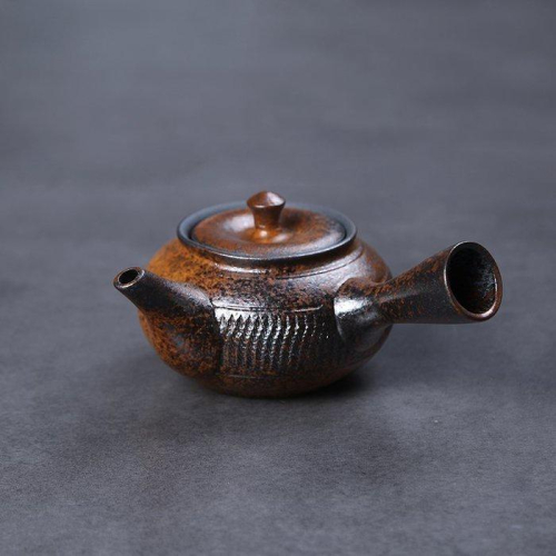 【返璞小居】日式茶具粗陶側把壺 宜興紫砂茶壺 陶壺 功夫茶具 窯變陶製茶具茶壺