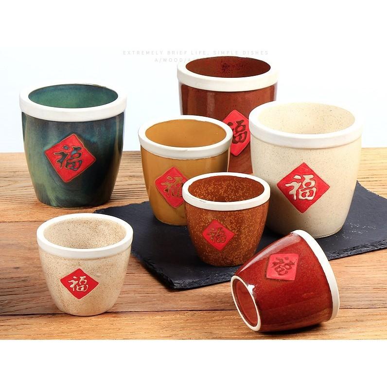 【返璞小居】福字調味罐粗陶小水缸特色儲物收纳缸陶瓷福字小米甕調料缸茶葉罐家居擺件