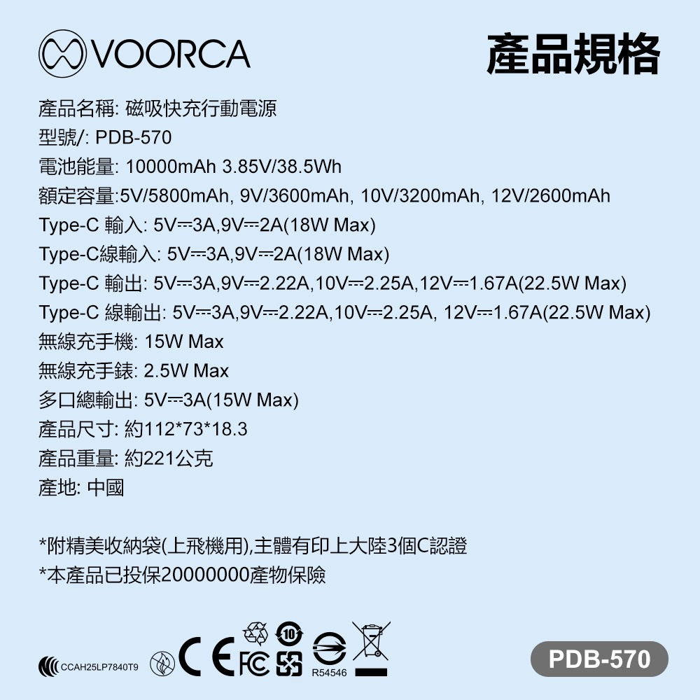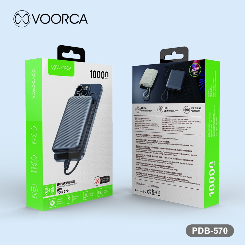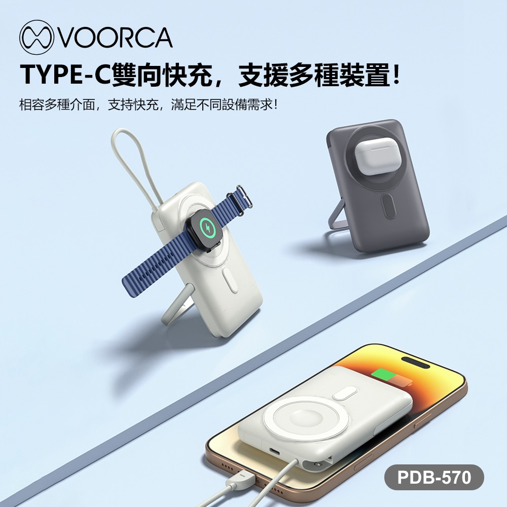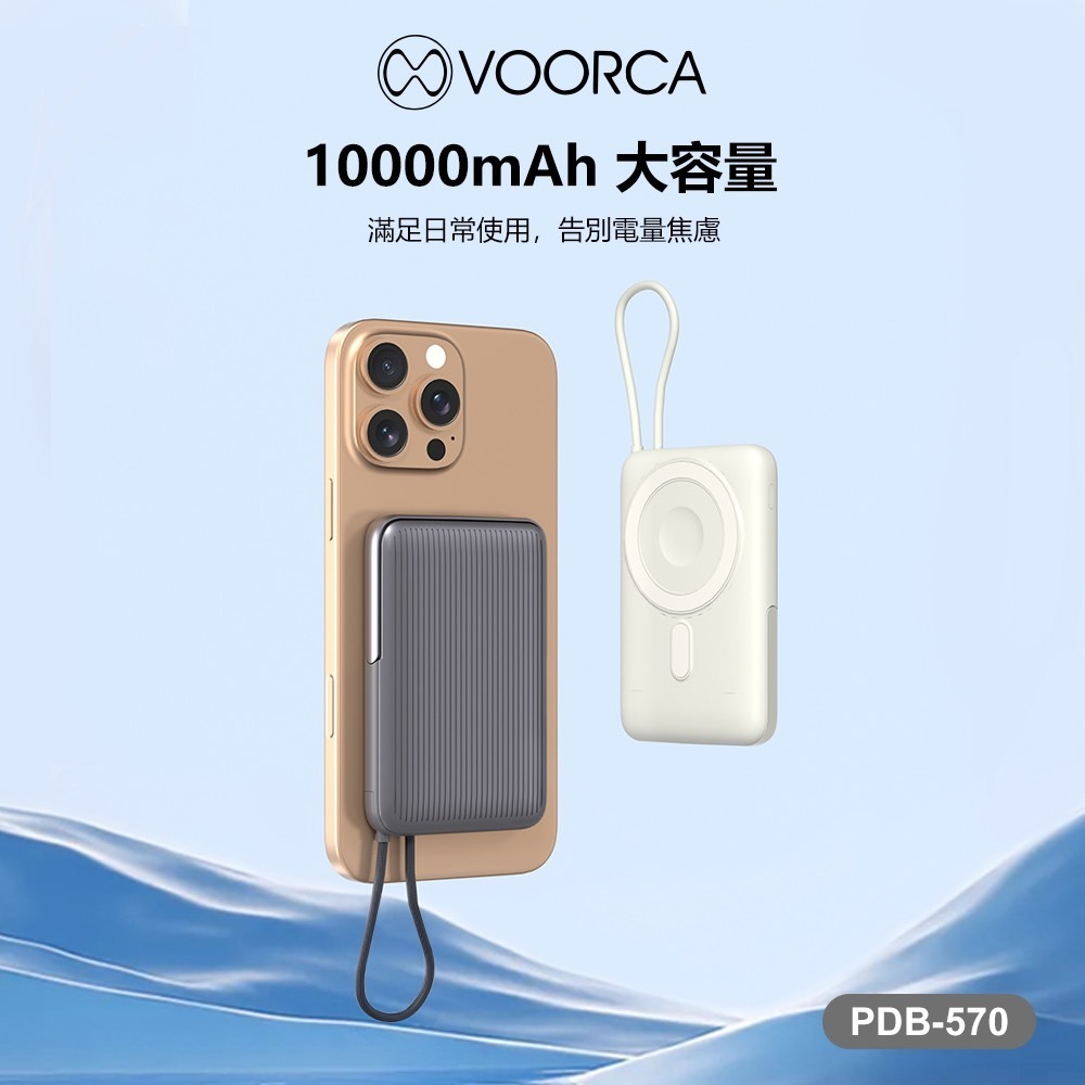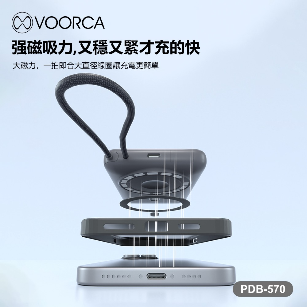 VOORCA PDB-570 超薄型行李箱10000mah自帶線+3合1磁吸式無線充+隱形立架多功能行動電源