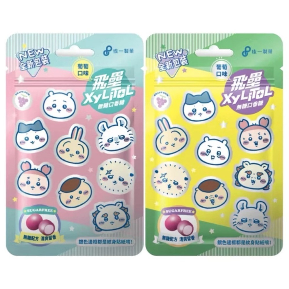 全新登場-飛壘Xylitol無糖口香糖-葡萄口味 X吉伊卡哇 大頭Style 包裝就是紋身貼。