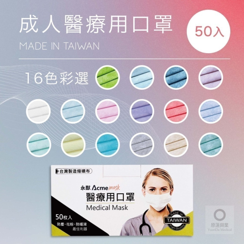 永猷 成人醫療用口罩-石灰綠.英式奶.藍.綠.粉.白.黃.紫.天青藍.淡靛藍.星辰紫.透氣-水藍.玫瑰粉.蔚海藍 50入/盒