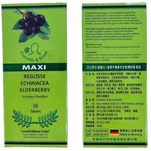 商品名稱:樂立舒 紫錐花+接骨木莓草本甘草潤喉糖