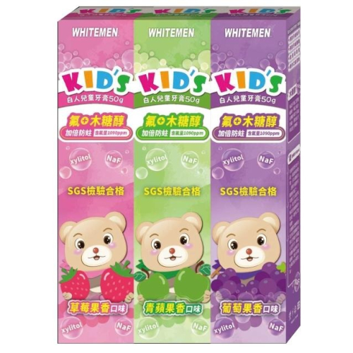【白人】兒童牙膏50g 單入 3入組|草莓|清蘋|葡萄口味 公司現貨