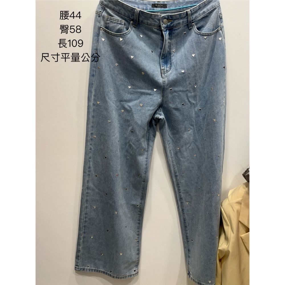 OB 嚴選 立體銀色愛心壓印牛仔褲 銀色愛心牛仔寬褲 大碼牛仔褲