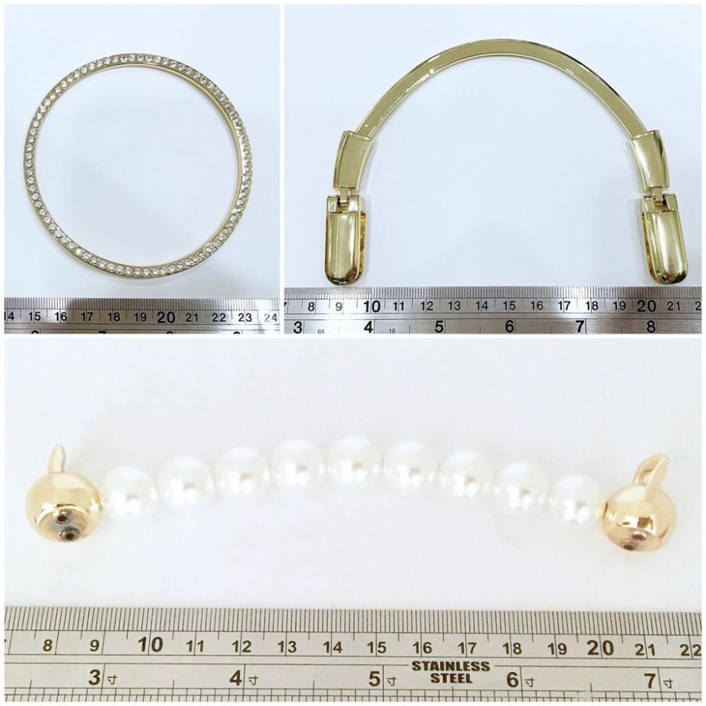 高質感鑽飾珍珠提把~晚宴包 手拿包 手挽 珍珠鏈條 五金配件 手提把包材料 手工藝 鍊條 金屬鏈 箱包配件 DIY
