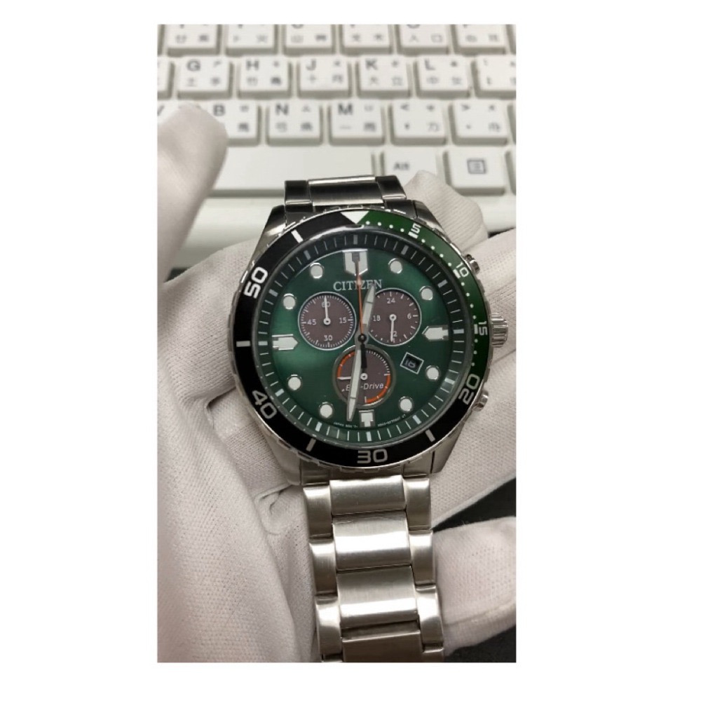 CITIZEN星辰 光動能三眼計時運動錶-軍綠43mm (AT2561-81X)