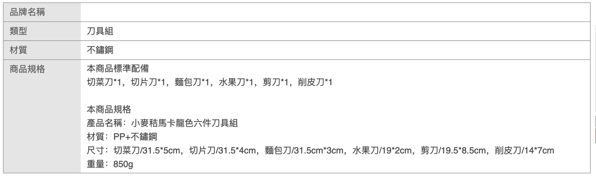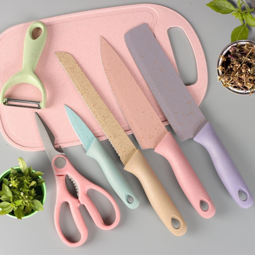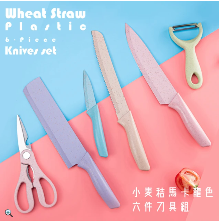 馬卡龍彩色小麥秸稈六件套廚房刀具組