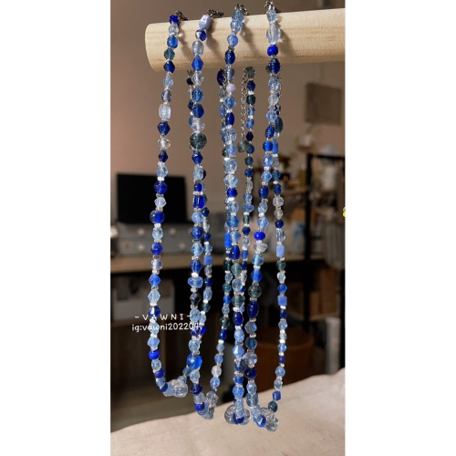 一串深海藍與冰透藍交織的琉璃珠,