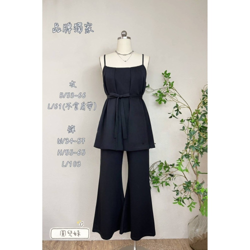 圓兒妹中大尺碼❤️小中大尺碼顯瘦純色素面百搭質感細肩帶側綁帶兩件式套裝✔️約90公斤內可穿(FF)2513
