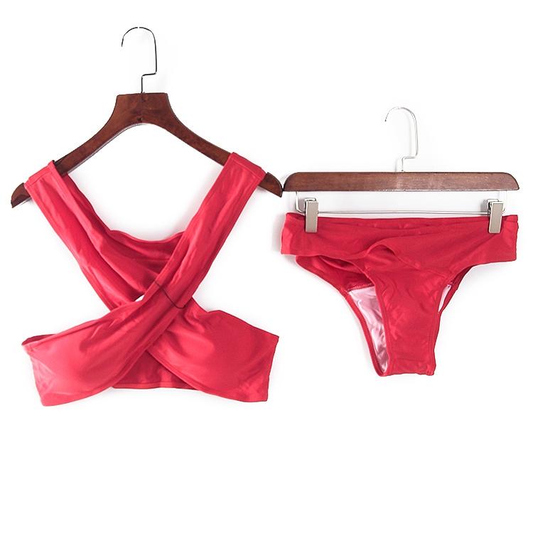50 台灣現貨 性感交叉紅色比基尼兩件式泳裝 紅色交叉綁帶泳衣 上下套裝 時尚紅色泳裝 L號