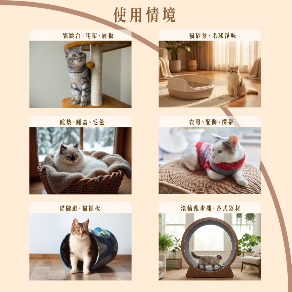 用途:貓窩、貓砂、貓尿尿便便地方的去味
