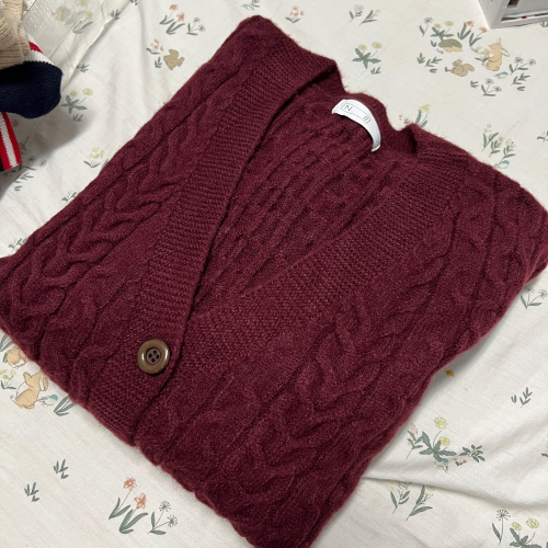 二手極新謝綺綺NO11酒紅針織麻花外套
